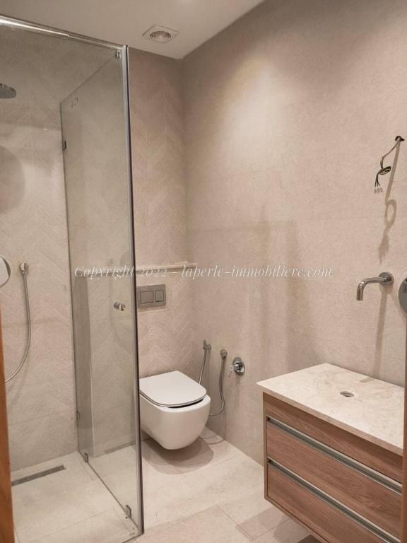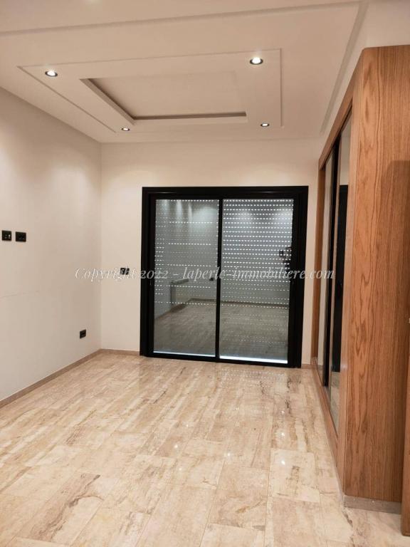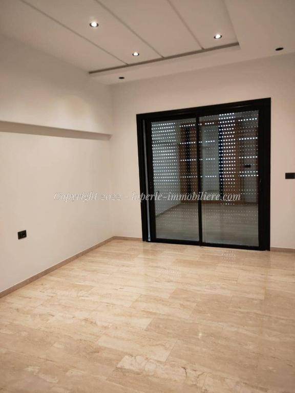 La perle immobilière vous propose a la vente un S+3 haut standing directement promoteur. il se compose d'un salon lumineux avec balcon, une cuisine équipée deux chambres a coucher avec une salle de bain commune et une suite parentale