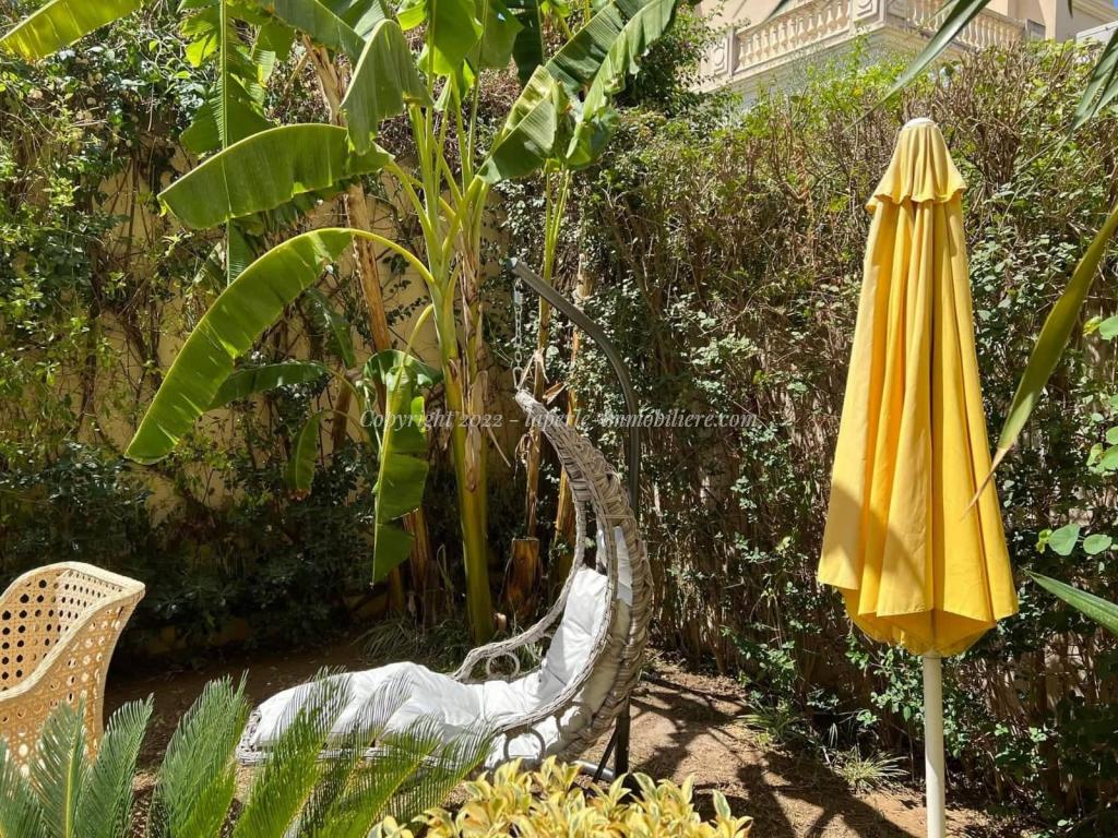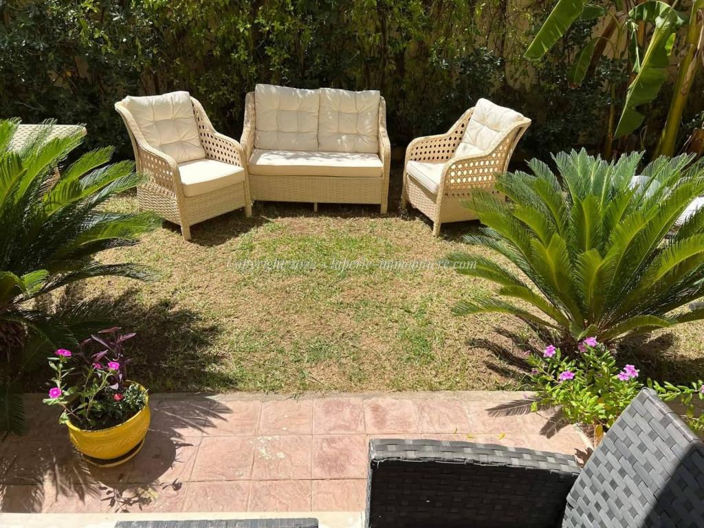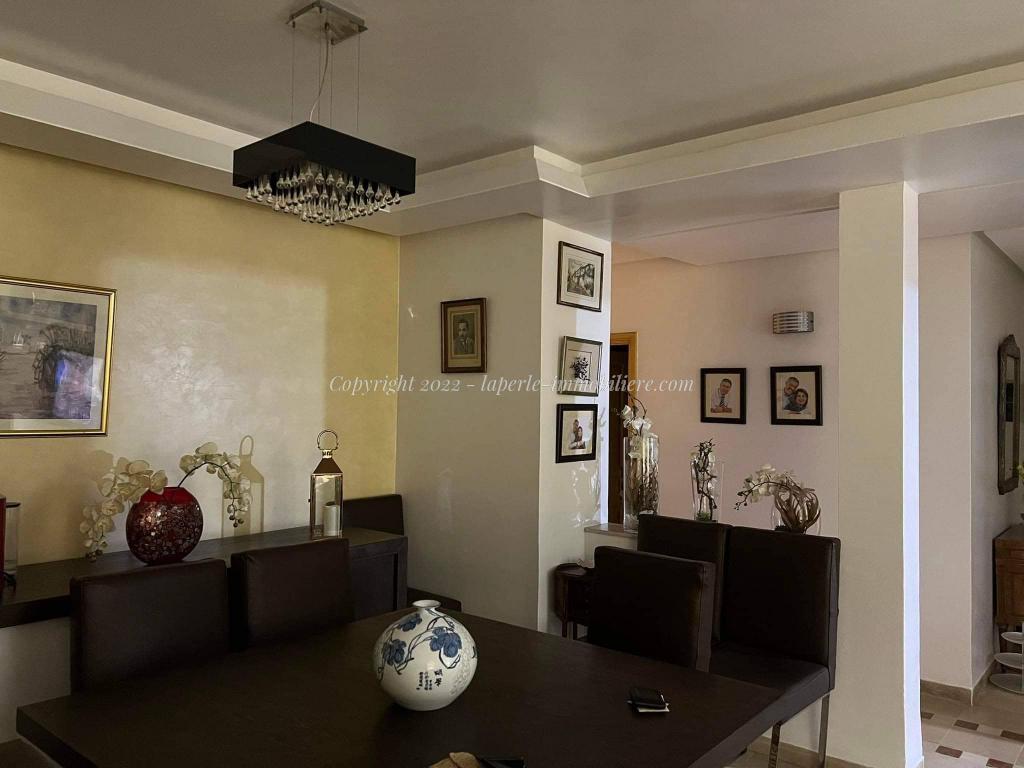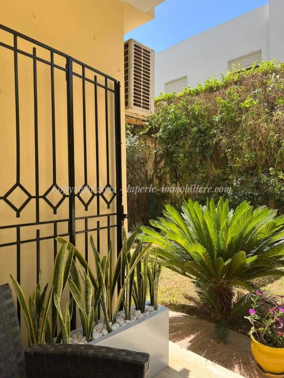 L'appartement se comporte comme suite : Vaste salon ouverte directe d'un grand jardin,trois chambres avec dressing deux salle d'eau et salle de bien,cuisine bien équipe