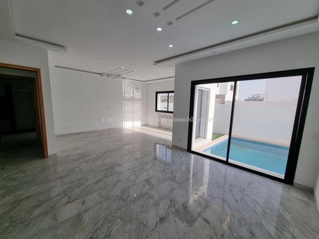 Au rez-de-chaussée on trouve un spacieux salon ouvrant sur une belle terrasse donnant une impressionnante piscine et un beau jardin , suite parentale ,Une cuisine moderne et une salle d’eau.