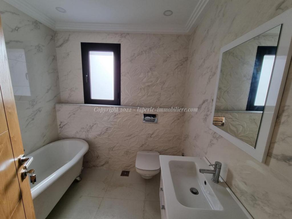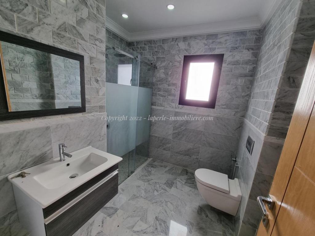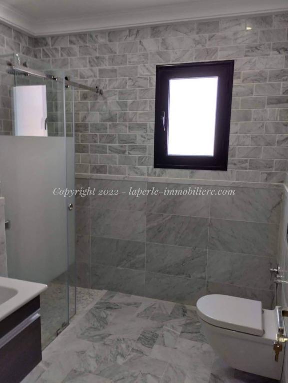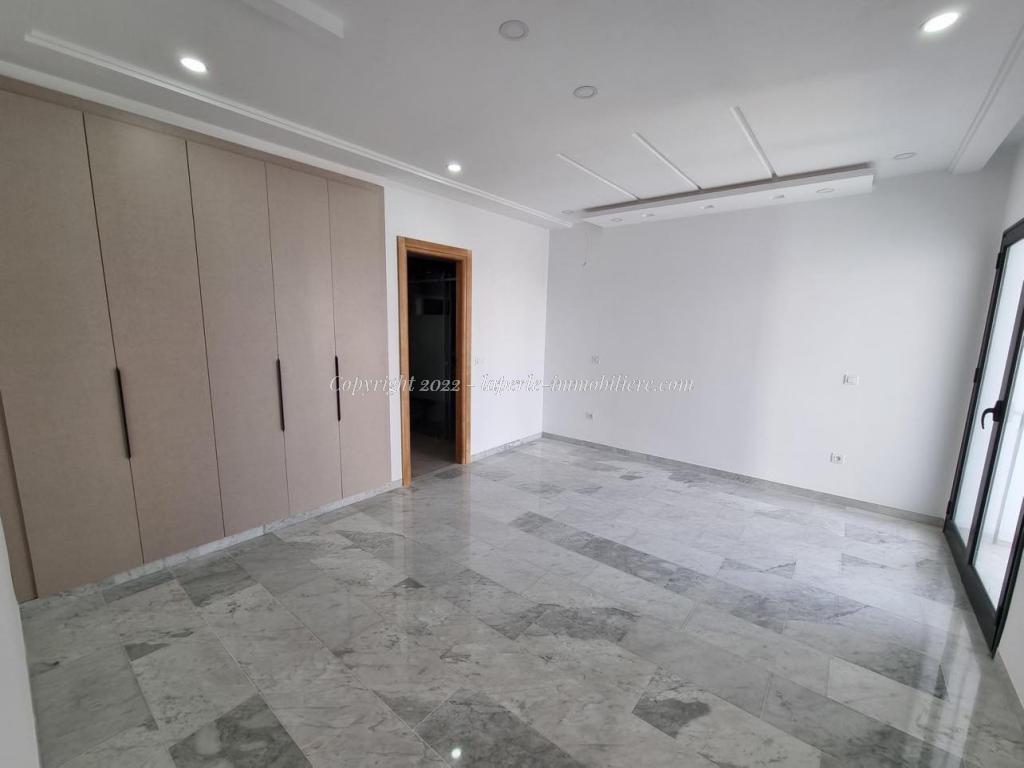 Toutes les pièces sont spacieuses et lumineuses chacune avec son dressing, portes fenêtres coulissantes en Aluminium, volet électrique roulant, sanitaire de luxe .