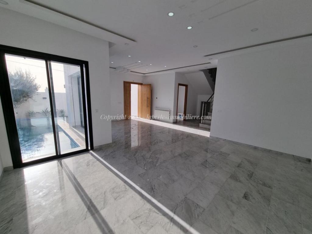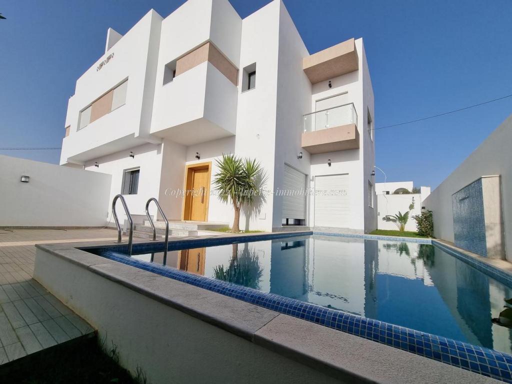Notre agence La Perle Immobilière Hammamet vous propose à la vente une luxueuse villa de type S+5 située à Hammamet Nord. Karouba