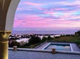 A loue pour les vacances une villa avec vue 360° panoramique chez notre agence la perle immobilière Hammamet-Tunisie La Villa située sur les collines de Hammamet-Nord, à 5 minutes de la plage, qui se caractérise par une vue panoramique mer. ...