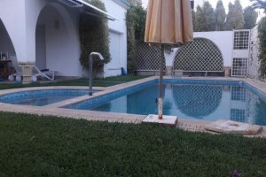 La Perle Immobilière vous propose a Louer une belle villa n plein pieds dans un quartier résidentiel prés de la zone touristique. entourée avec jardin gazonnée et arboré et une piscine La propriétaire dispose d'un salon donnant sur la pisci...